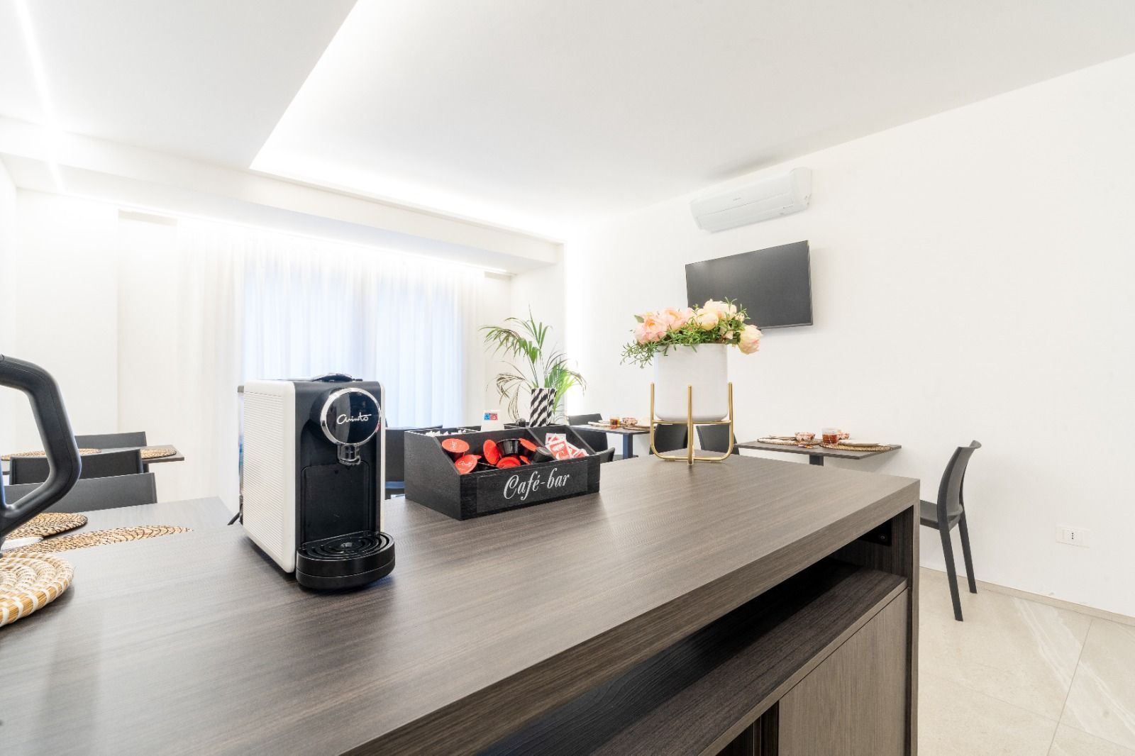 Tra i servizi della struttura in un ambiente elegante, uno degli elementi più apprezzati è la sala ristoro comune. In questo spazio dedicato al relax sono disponibili bollitore, macchina del caffè, tè e tisane che gli ospiti possono utilizzare liberamente durante la giornata. L’ambiente è arredato in modo sobrio e accogliente, con tonalità che favoriscono tranquillità e momenti di pausa. La sala può essere utilizzata anche come punto di appoggio informale per chi desidera lavorare o pianificare itinerari locali.