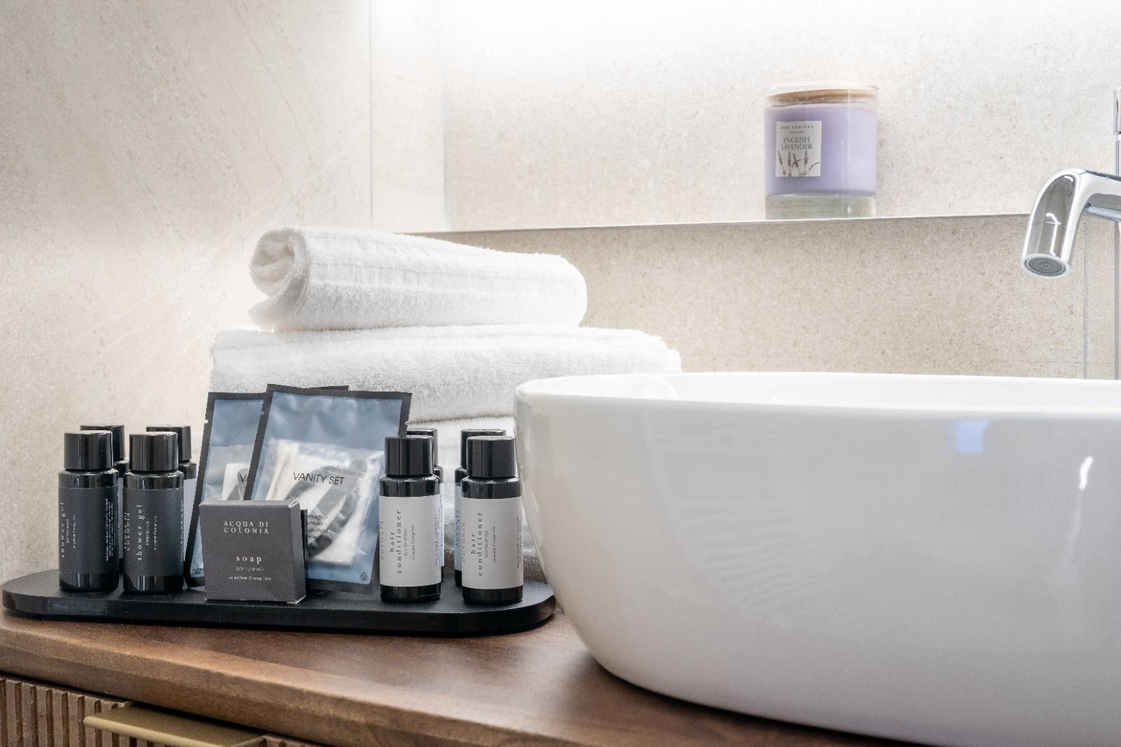 Le dotazioni sono state selezionate per offrire comodità senza rinunciare alla semplicità d’uso, integrandosi armoniosamente con l’ambiente elegante della struttura.